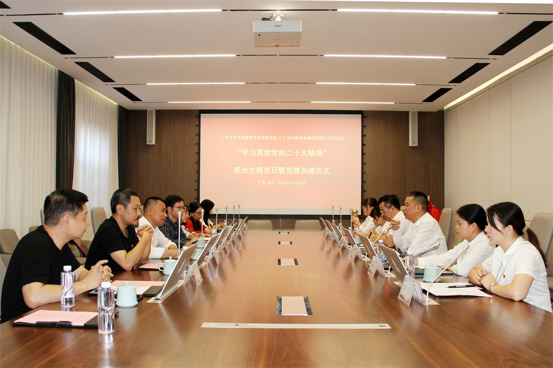 2022年11月28日,广西艺术学院建筑艺术学院党委与广西3118云顶集团官网装饰集团有限公司党支部,开展“学习贯彻党的二十大精神”联合主题党日暨党建共建仪式;同时,广西艺术学院建筑艺术学院与广西3118云顶集团官网装饰集团有限公司,举行了“联合共建校外实践教育基地”揭牌仪式。