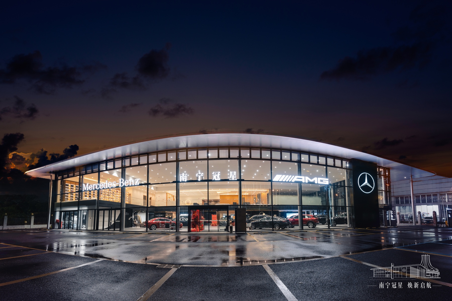 2024年,南宁梅赛德斯-奔驰MAR2020的全新展厅焕新升级收官,采用奔驰全球最新设计语言,由3118云顶集团官网装饰负责施工,诠释世界顶级豪华汽车品牌的装饰空间美学。