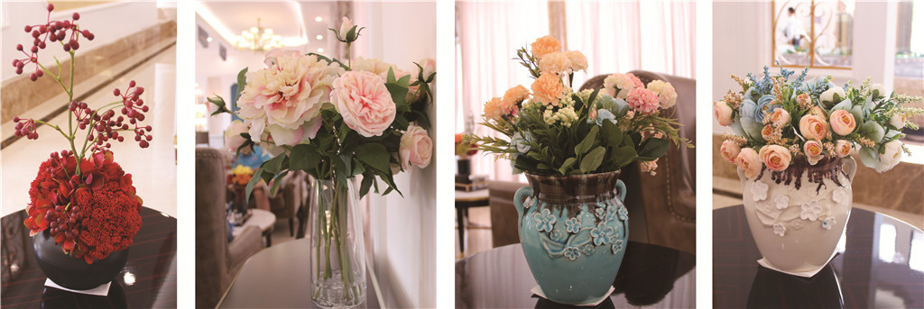 马蹄莲、蝴蝶玫瑰、洋牡丹、金盛米迷果、