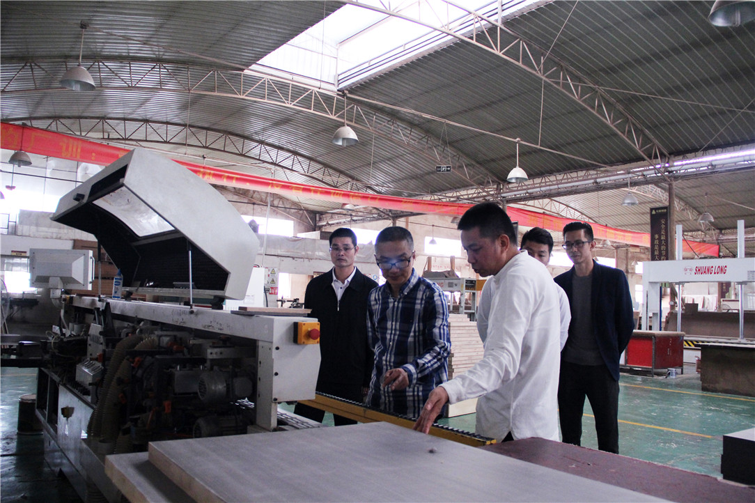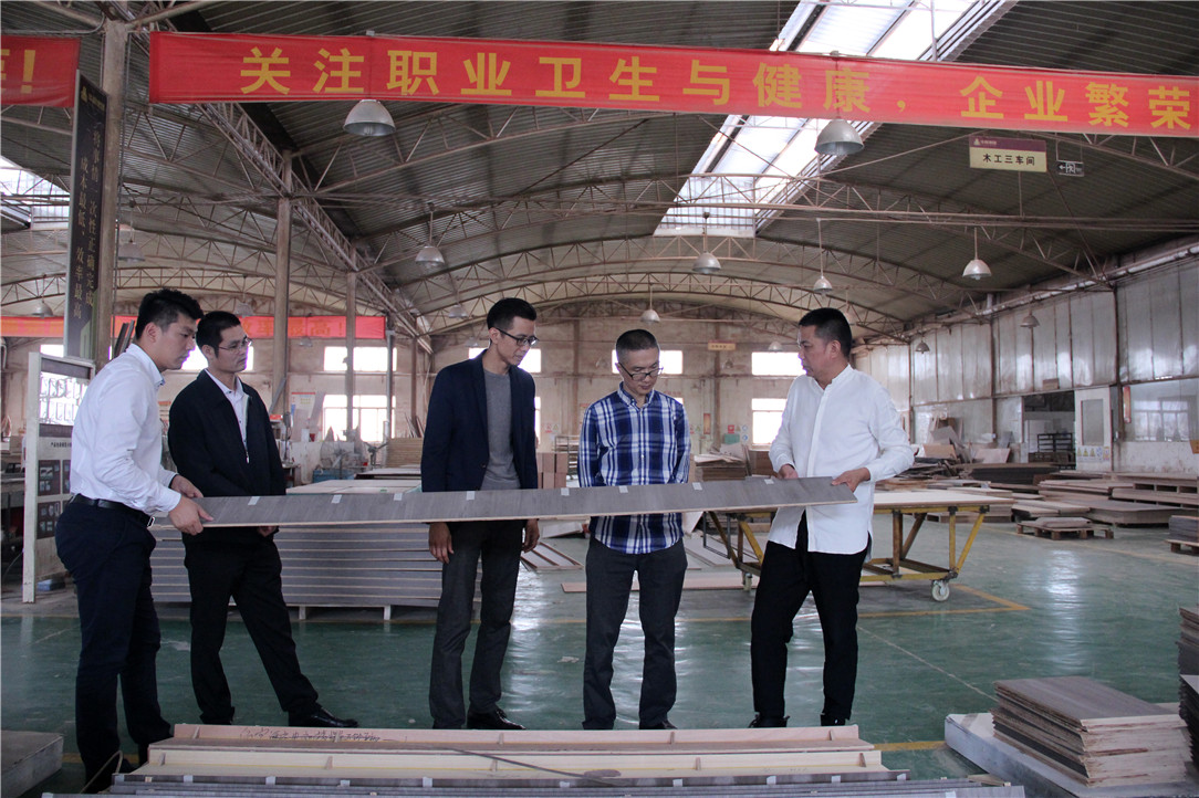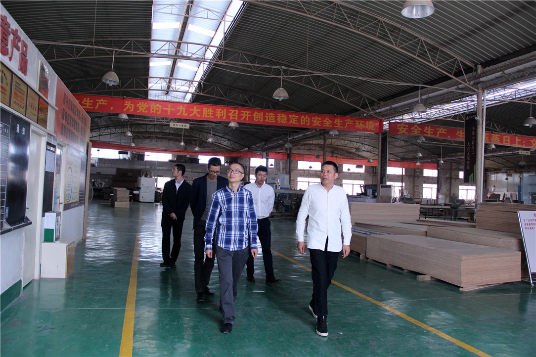 在杨景忠董事长的带领下,黄赞副主任、梅嵩科长首先深入3118云顶集团官网生产基地,了解3118云顶集团官网集团装修固装配套技术创新、标准化管理、环保节能等生产经营情况。