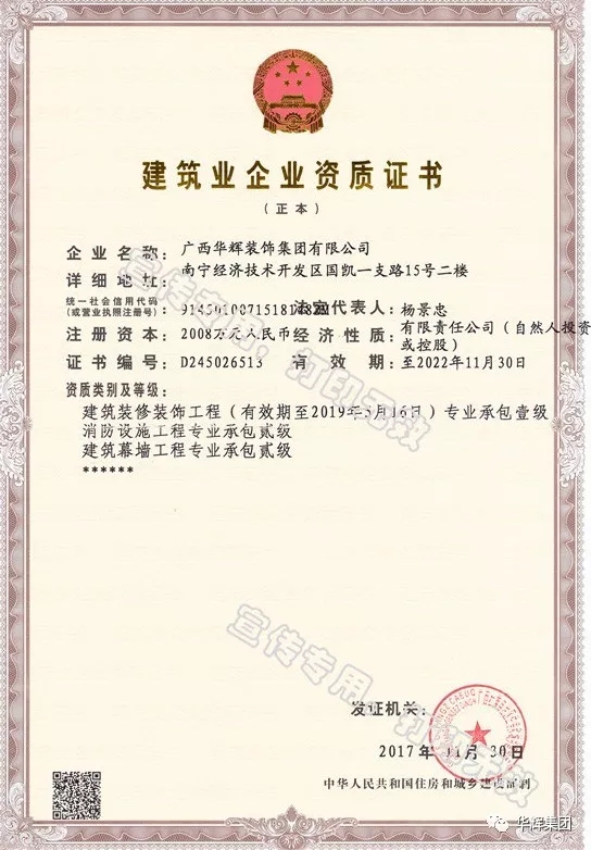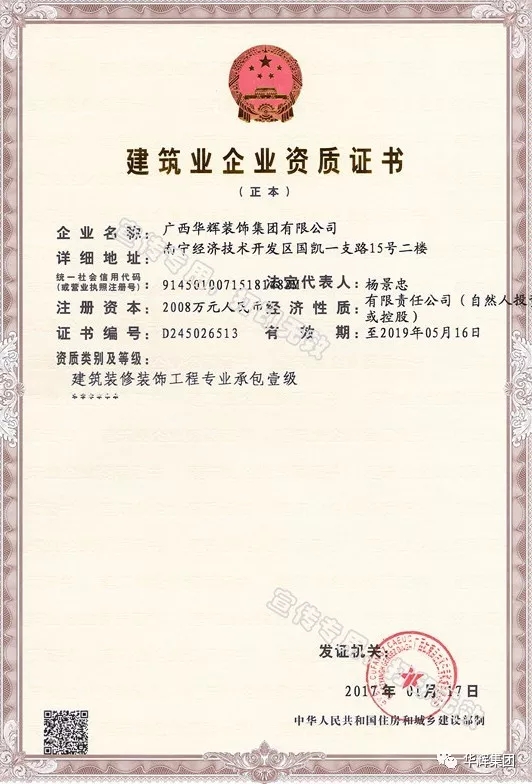1月,3118云顶集团官网集团喜获建筑装修装饰工程专业承包壹级。