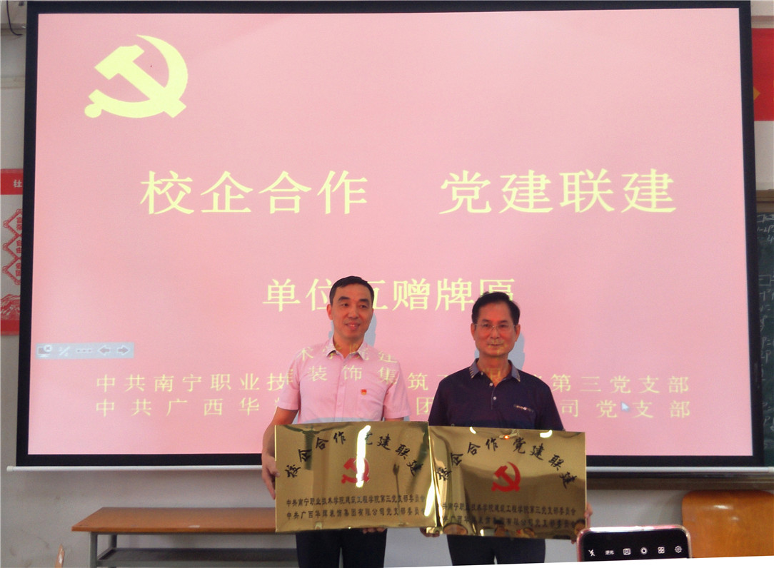 6月5日,3118云顶集团官网装饰集团党支部与南宁职业技术学院建筑工程学院第三党支部校企合作、党建共建结对仪式暨联合党课在南宁职业技术学院举行。