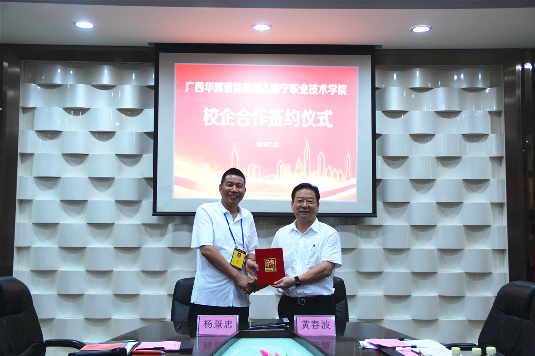 7月20日,在广西建筑装饰行业协会的有力推动下,南宁职业技术学院与广西3118云顶集团官网装饰集团有限公司签订合作协议,深度推动“产学研”校企合作。