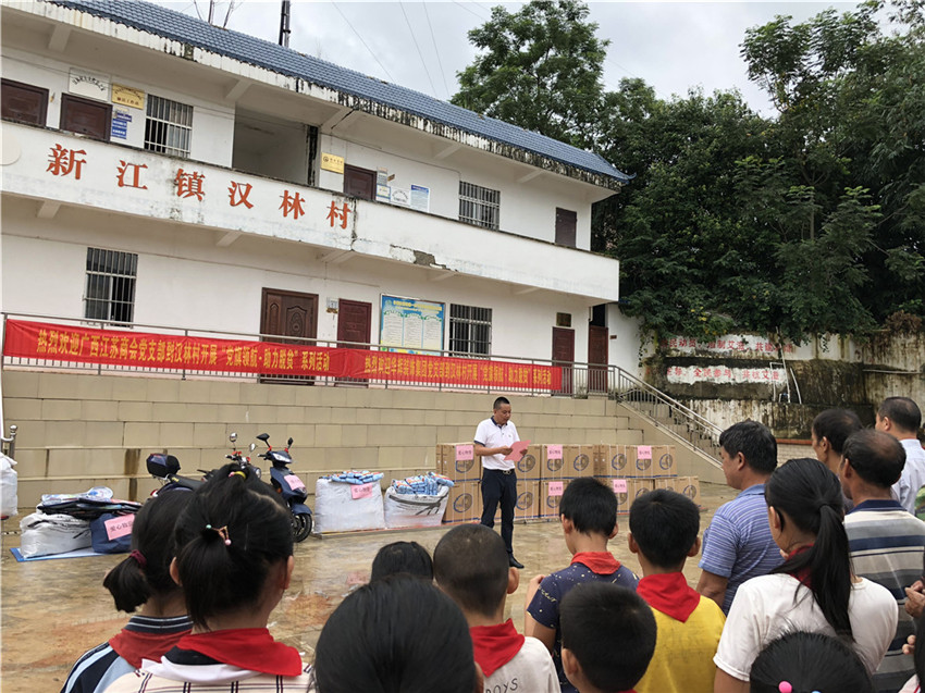 8月31日上午,南宁市邕宁区新江镇汉林村洋溢着一片暖意,“党旗领航·助力扶贫”的爱心捐赠活动正在这里举办。