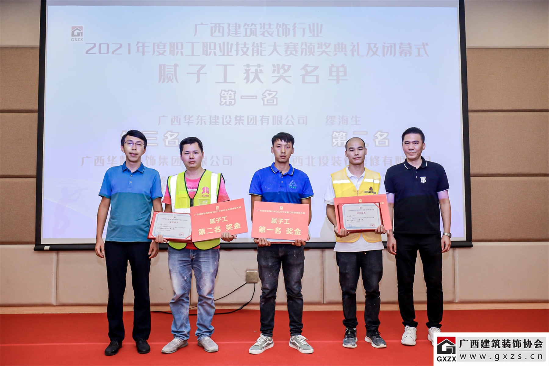 2021年7月23日,广西建筑装饰行业2021年度职工职业技能大赛在广西建设职业技术学院举行。3118云顶集团官网参赛选手荣获团体第一名且综合评分满分100分、镶贴工第一名、电工第三名、腻子工第三名的好成绩。
