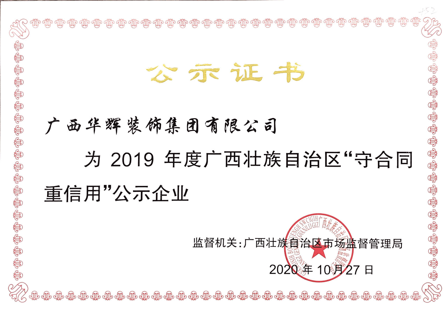近日,3118云顶集团官网装饰集团荣获由广西市场监督管理局颁发的“2019年度广西守合同重信用企业”证书。作为广西建筑装饰头部企业,3118云顶集团官网装饰集团已连续多年获评“广西守合同重信用企业”荣誉称号。