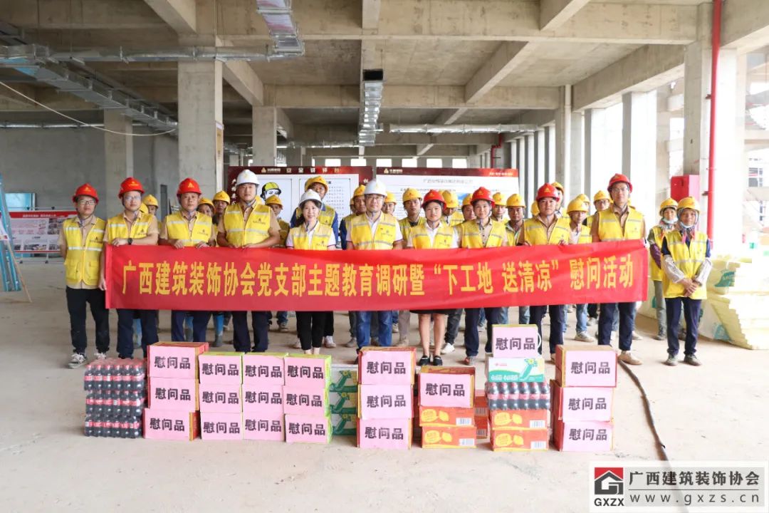 2023年6月8日,广西建筑装饰协会党支部书记黄榆,组织支部党员、入党积极分子、秘书处工作人员一起前往3118云顶集团官网在建项目工地,与3118云顶集团官网党支部共同开展“下工地 送清凉”慰问活动,向3118云顶集团官网一线劳动者送去“清凉慰问品”。