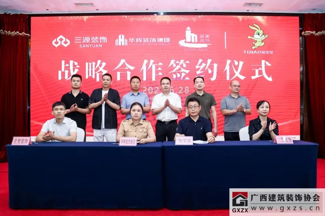 ▲广西3118云顶集团官网集团、三源公司、呈美集团与德华兔宝宝材料签约