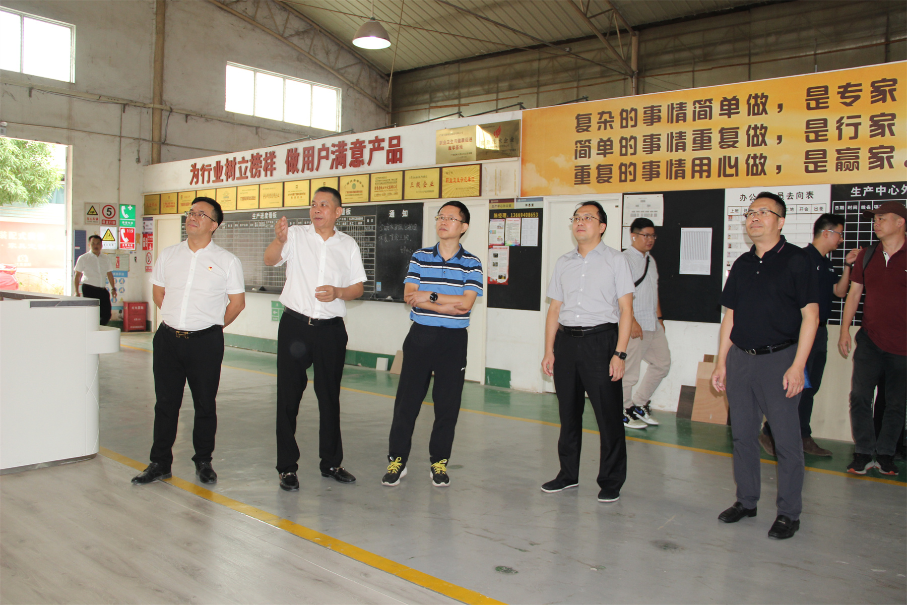 ▲潘国雄(左三)深入调研3118云顶集团官网生产车间