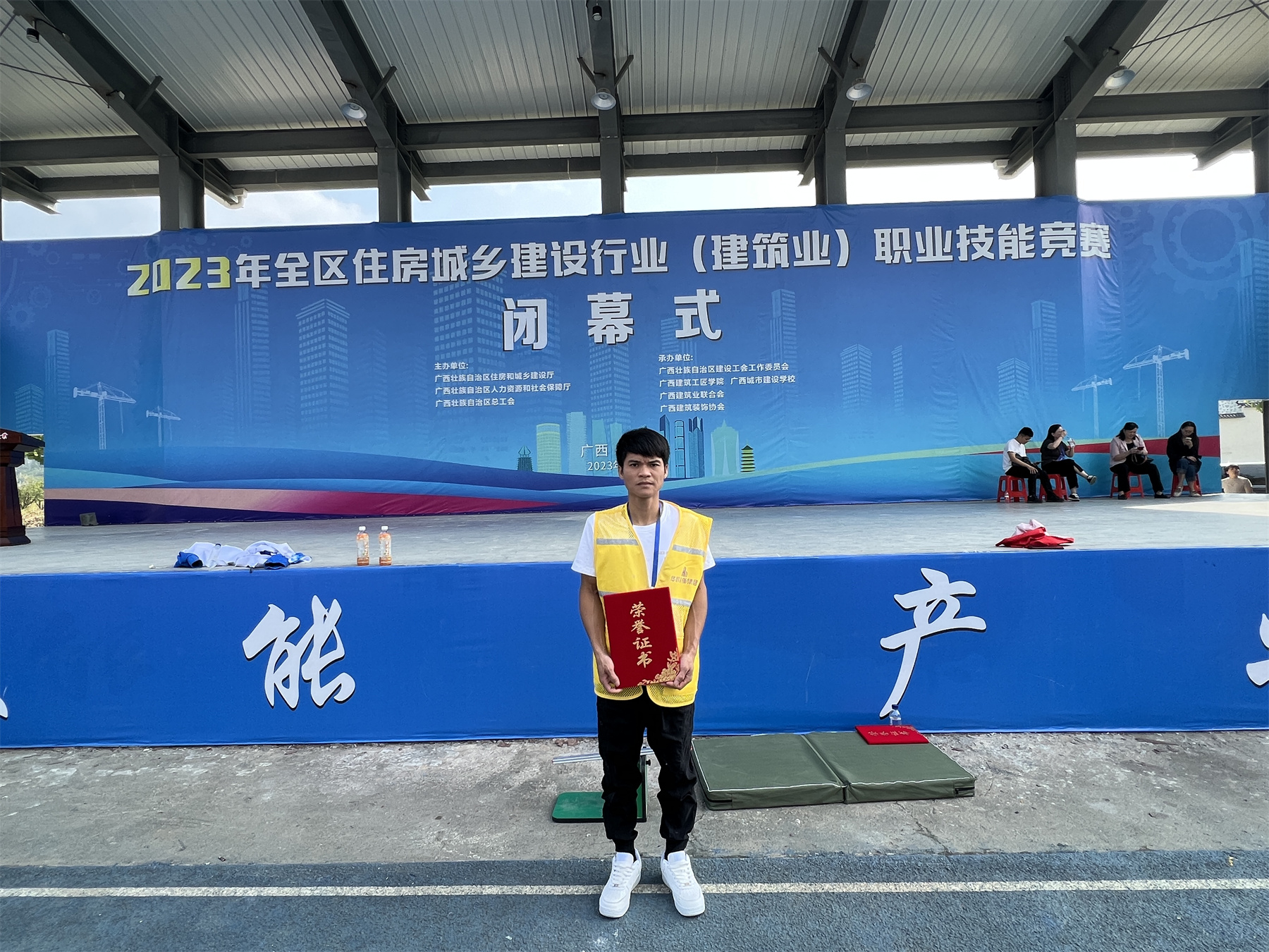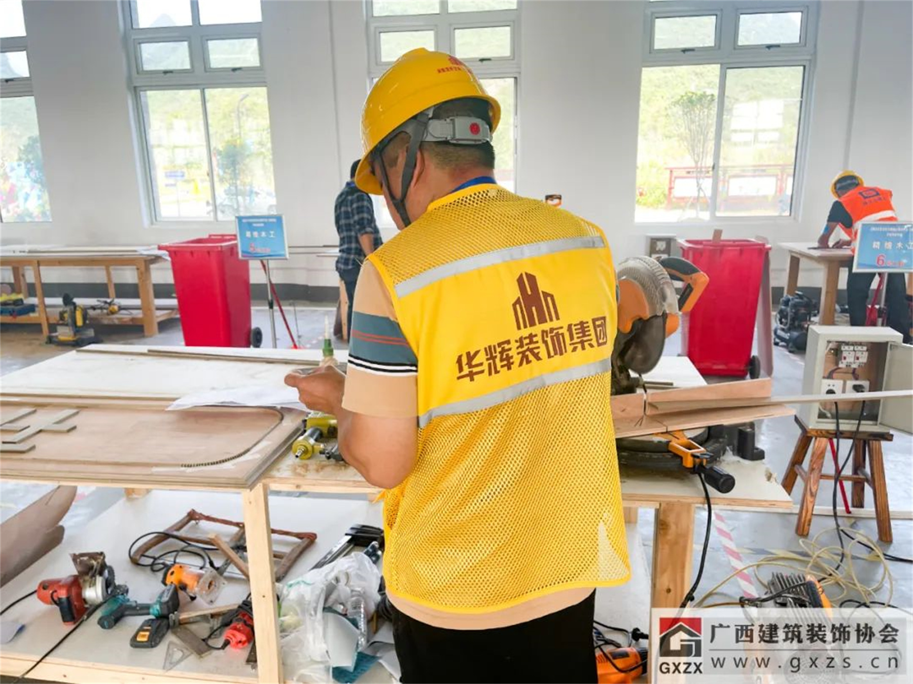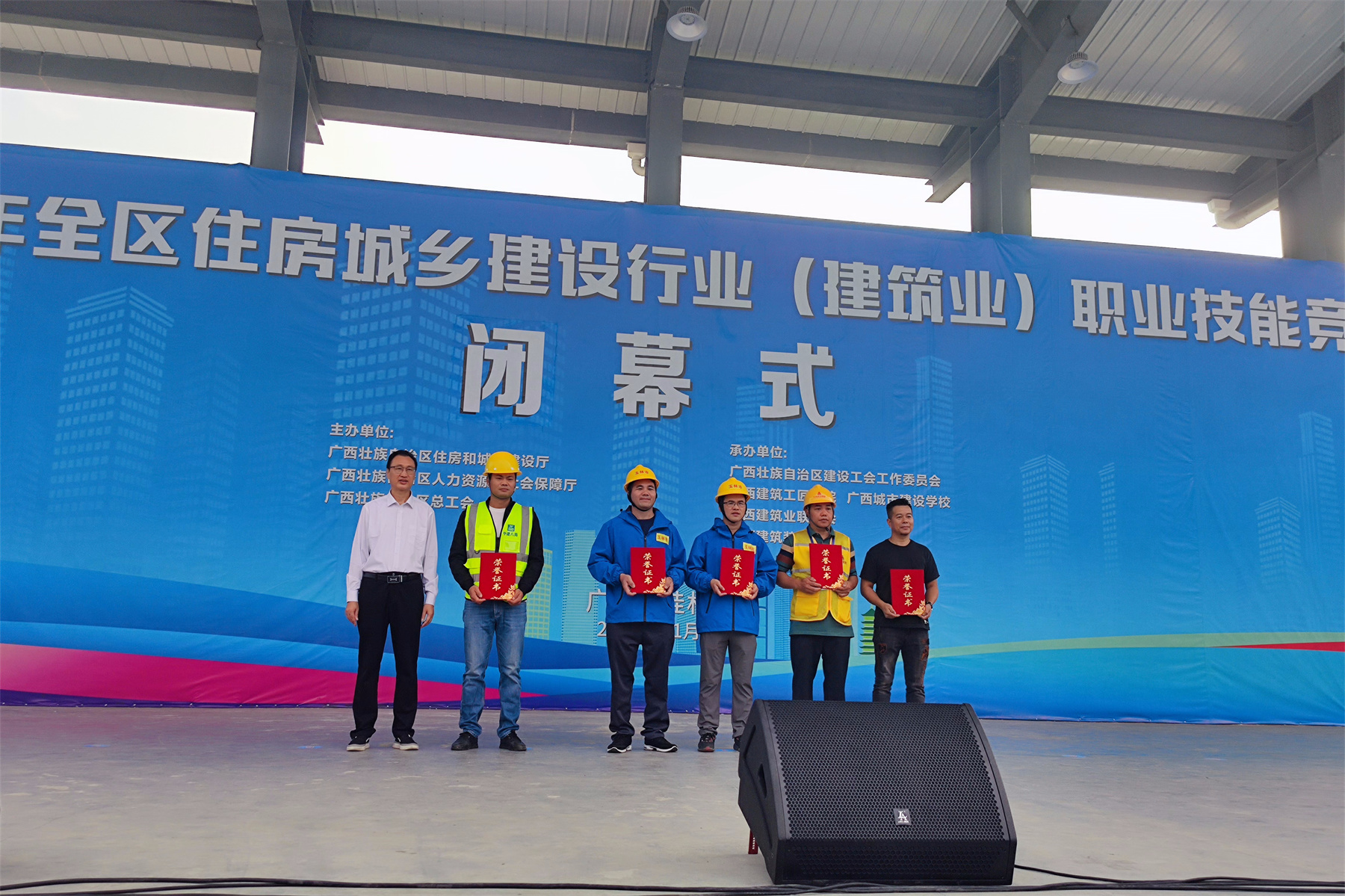 本次职业技能竞赛由广西壮族自治区住房和城乡建设厅,广西壮族自治区人力资源和社会保障厅,广西壮族自治区总工会主办,建筑业承办单位为广西壮族自治区建设工会工作委员会,广西城市建设学校,广西建筑业联合会,广西建筑装饰协会联合承办。本次建筑业竞赛共设5个比赛项目,分别是抹灰工、砌筑工、钢筋工、精细木工、室内装饰设计(镶贴工)。