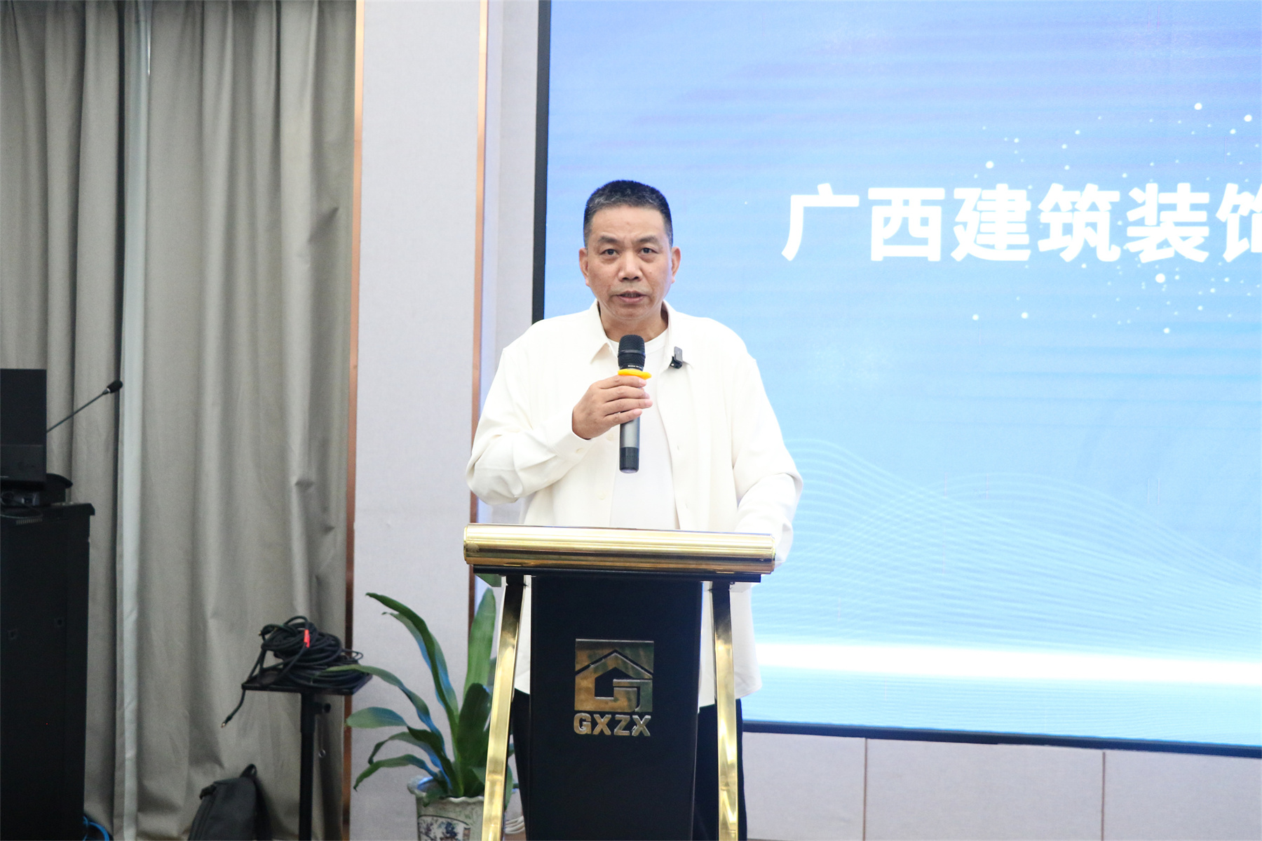 ▲广西建筑装饰协会副会长、广西3118云顶集团官网装饰董事长集团杨景忠为本次活动致辞