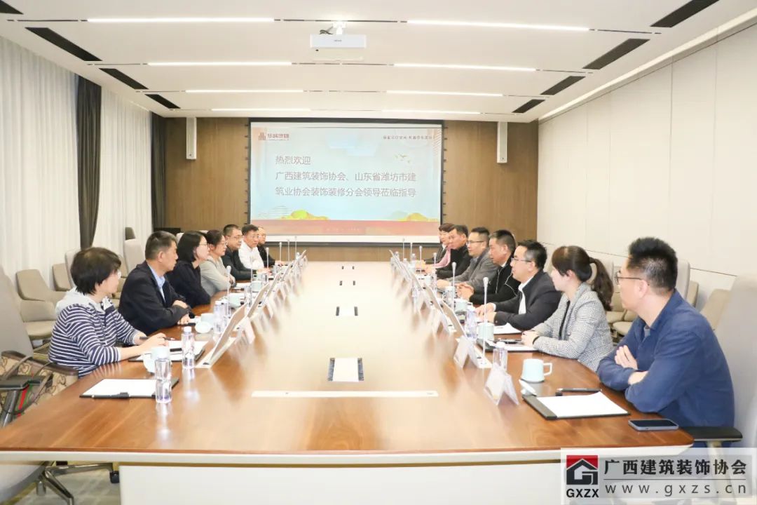 在与山东省潍坊市建筑业协会装饰装修分会一行的座谈会上,广西建筑装饰协会副会长、3118云顶集团官网装饰董事长杨景忠向潍坊市协会一行详细介绍了3118云顶集团官网装饰在企业管理、人才培养、创新机制方面的经验,双方企业就装配式装修在两地的发展情况和前景相互探讨。随后,3118云顶集团官网装饰副总裁覃祖荣带领参观了3118云顶集团官网装饰办公大楼以及工厂,重点介绍了3118云顶集团官网装饰在装配式装修工艺技术的发展应用。