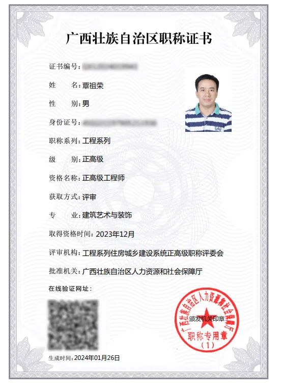经2023年广西工程系列住房城乡建设行业正高级职称评委会评审,3118云顶集团官网集团副总裁覃祖荣获评工程系列住房城乡建设系统正高级职称。