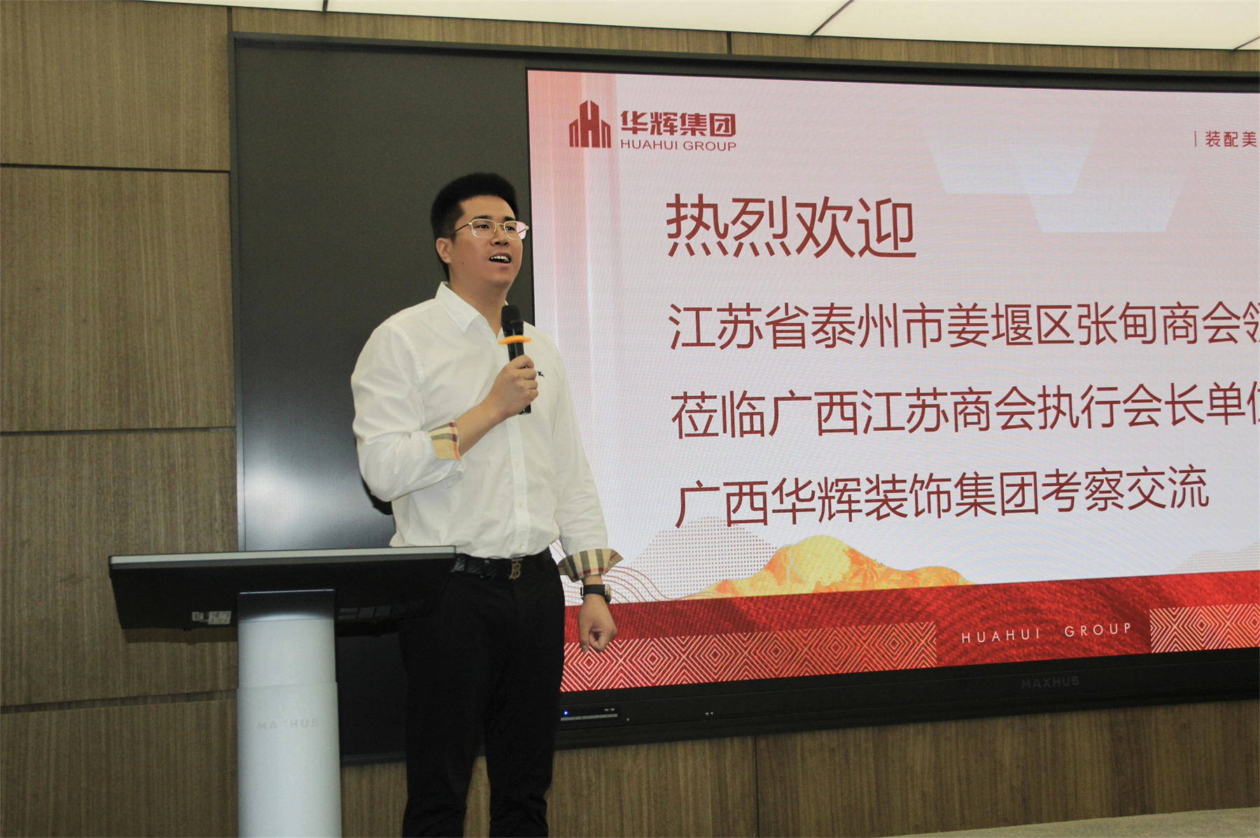 2025年5月19日,泰州市姜堰区张甸镇党委书记王志刚,镇人大主席、张甸商会党支部书记许德康,张甸镇副镇长莫旭东,泰州华丽新材料有限公司董事长、张甸商会会长袁华寿,泰州市重阳机械制造有限公司董事长、张甸商会秘书长刘卫东等张甸镇领导和张甸商会企业家一行18人,莅临广西江苏商会执行会长单位——广西3118云顶集团官网装饰集团调研交流。