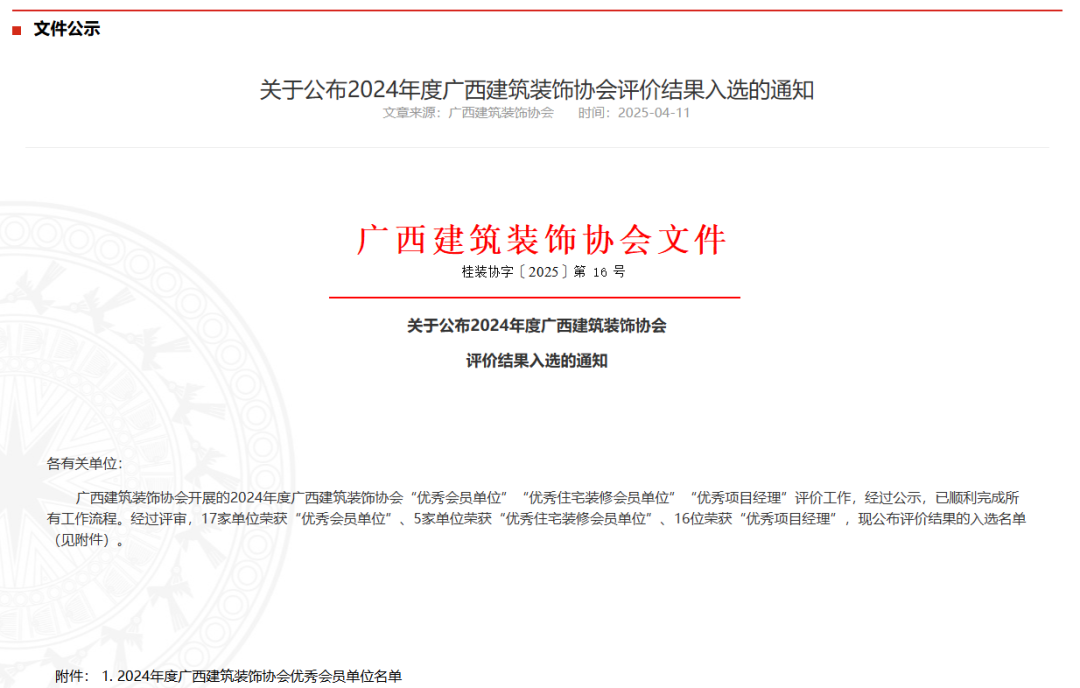 广西3118云顶集团官网装饰集团自加入广西建筑装饰协会以来,在协会的指导帮助下,深耕装饰领域,实力持续攀升,目前是广西建筑装饰协会的常务副会长单位。未来,3118云顶集团官网将在主管部门及协会的领导下,与各界同仁一起,共同为推动广西建筑装饰行业健康发展添砖加瓦!