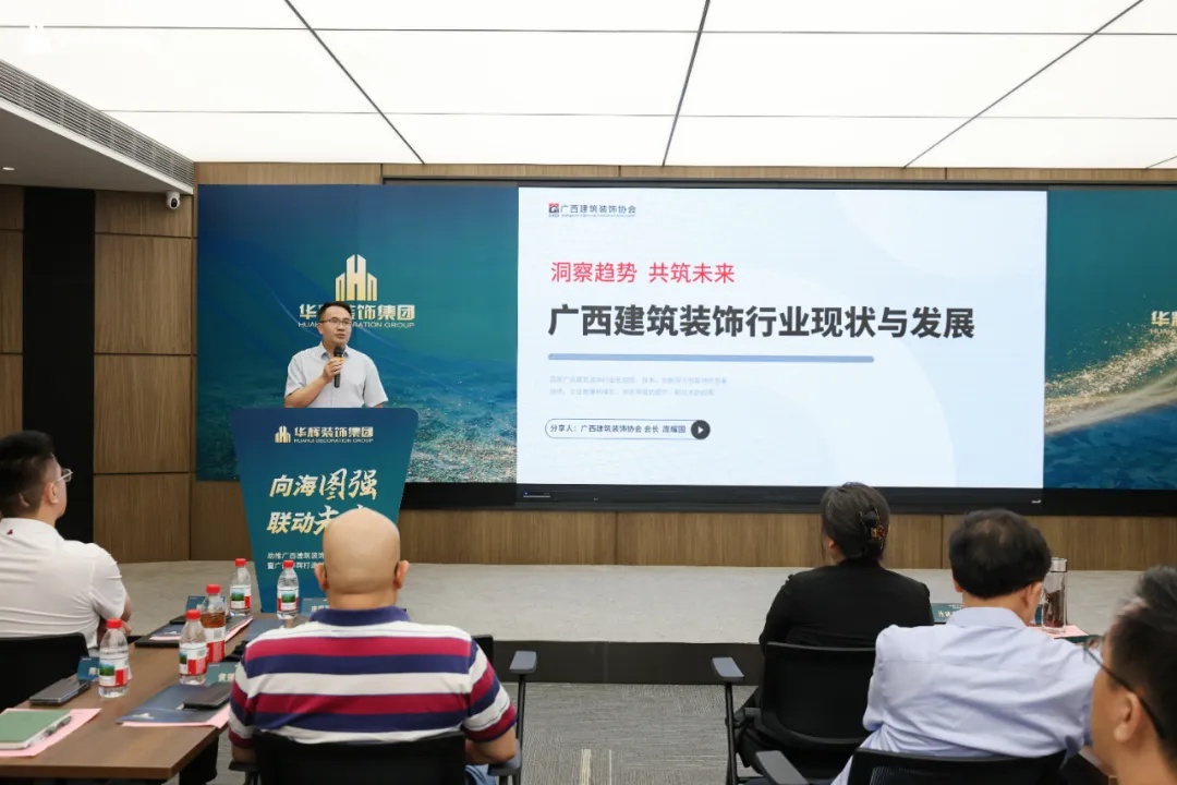 广西建筑装饰协会会长庞耀国结合行业实际,作主题为“洞察趋势 共筑未来--广西建筑装饰行业现状与发展”的分享,以翔实的数据,详细介绍了广西建筑装饰行业的发展历程以及对行业未来发展方向的看法,表达了对广西建筑装饰行业高质量发展前景的美好愿景,鼓励装饰企业走出去,积极应对市场变化,保持企业活力,推进智能化、数字化、装配化能力,抓住机遇稳步前行,对建筑装饰行业的趋势和未来共赢发展进行了深入洞察分析。同时,他呼吁行业企业加强合作,共同打造良好的行业生态,实现共赢发展。